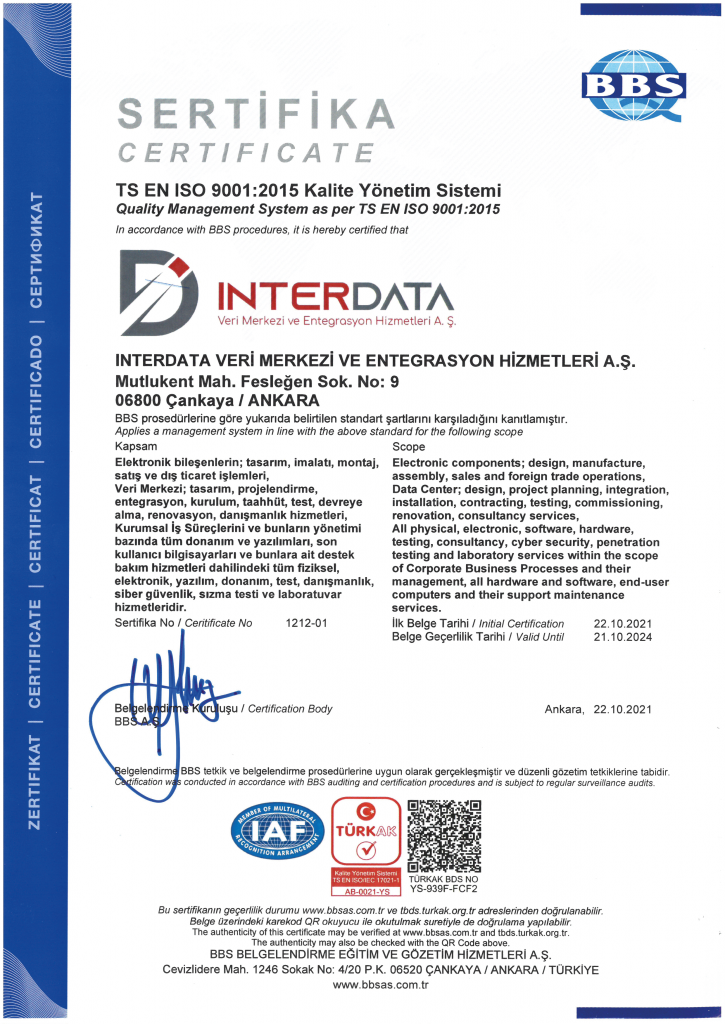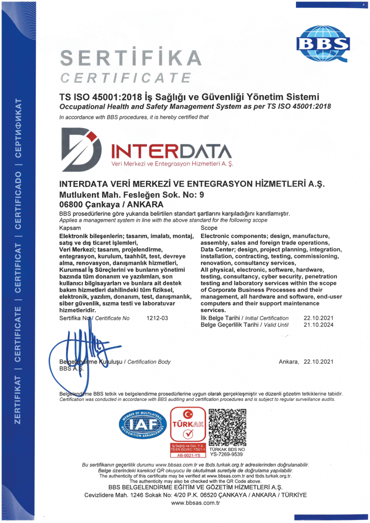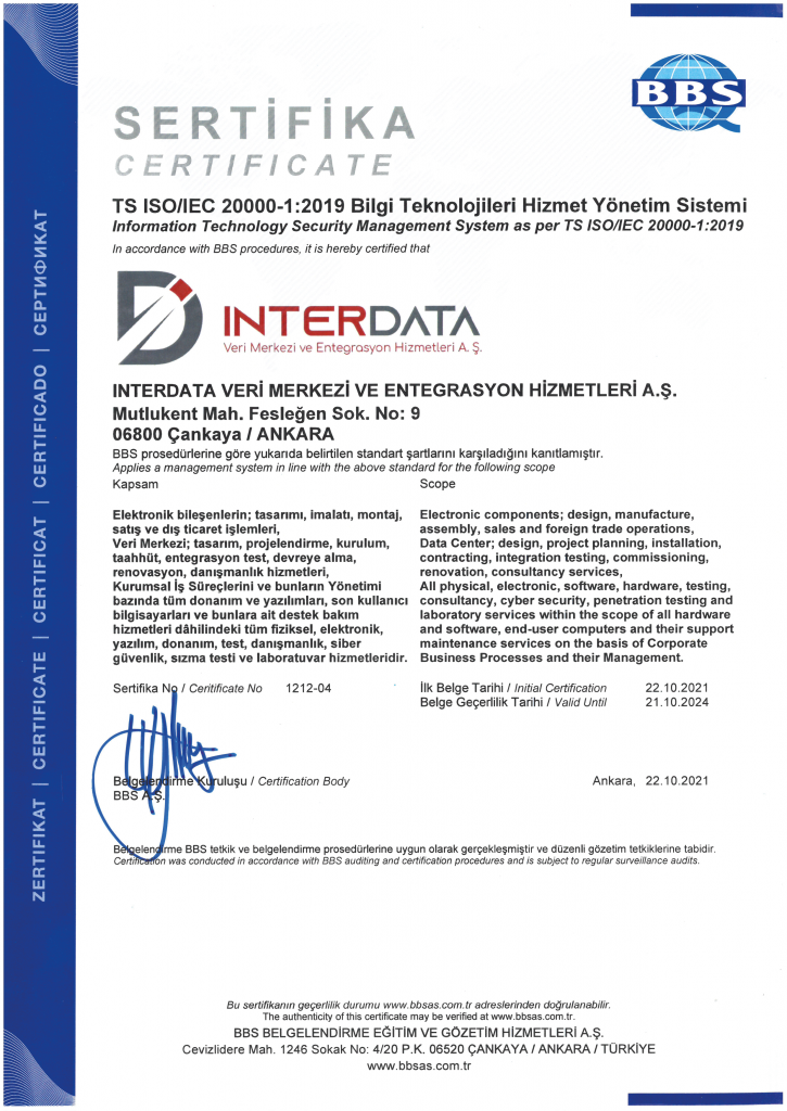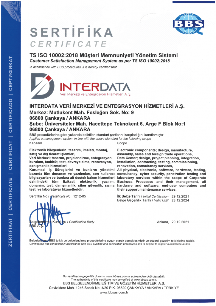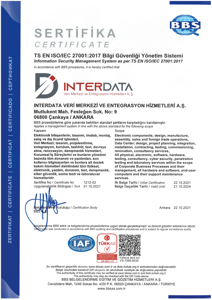 T.C. Enerji Piyasası Düzenleme Kurumu tarafından INTER ENERGY markası altında INTERDATA adına, 6446 sayılı Elektrik Piyasası Kanunu ve ilgili mevzuat uyarınca 17/11/2022 tarihli ve 11392-5 sayılı Kararı ile; 49 yıl süreyle ülke genelinde şarj ağı işletmeciliği faaliyeti göstermek üzere Şarj Ağı İŞLETMECİ LİSANSI verilmiştir.